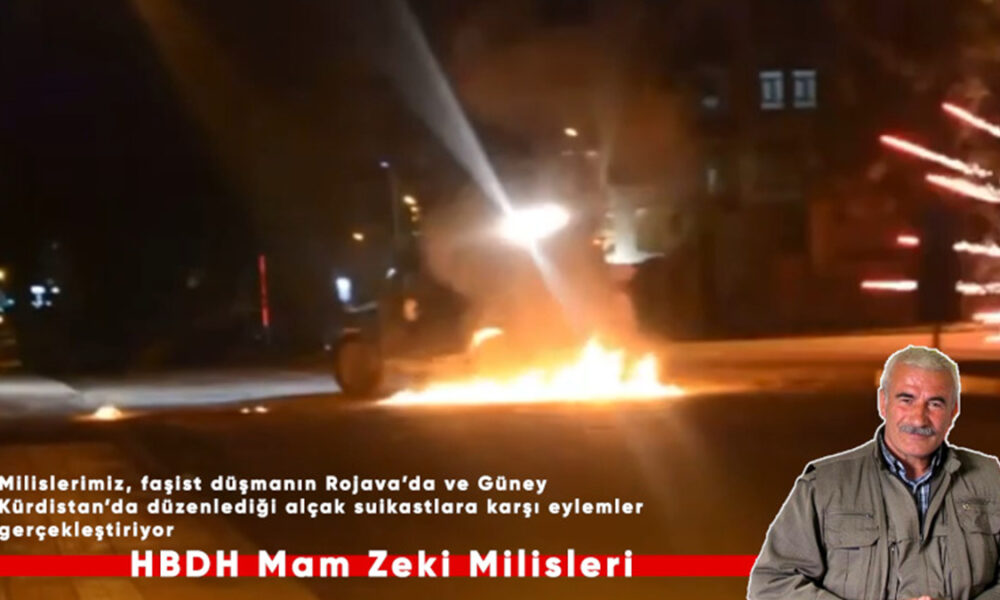 Eyleme ilişkin açıklamada şu ifadeler yer aldı: “Faşist devlet aşağılık suikastlar sonrası sahte zafer naraları atıp duruyor. Oysa kendini hiçbir yerde güvende hissedemiyor. Biliyor, her yerde saldırı altında olan kendisidir. Biliyor, emekçi halklar her yerde binlerce göz ile takip ediyor kendisini. Biliyor her an, herhangi bir köşe başında, bir sokakta, bir durakta devrimin fedai savaşçıları karşısına çıkabilir! Milislerimiz, faşist düşmanın Rojava’da ve Güney Kürdistan’da düzenlediği alçak suikastlara karşı eylemler gerçekleştiriyor.
