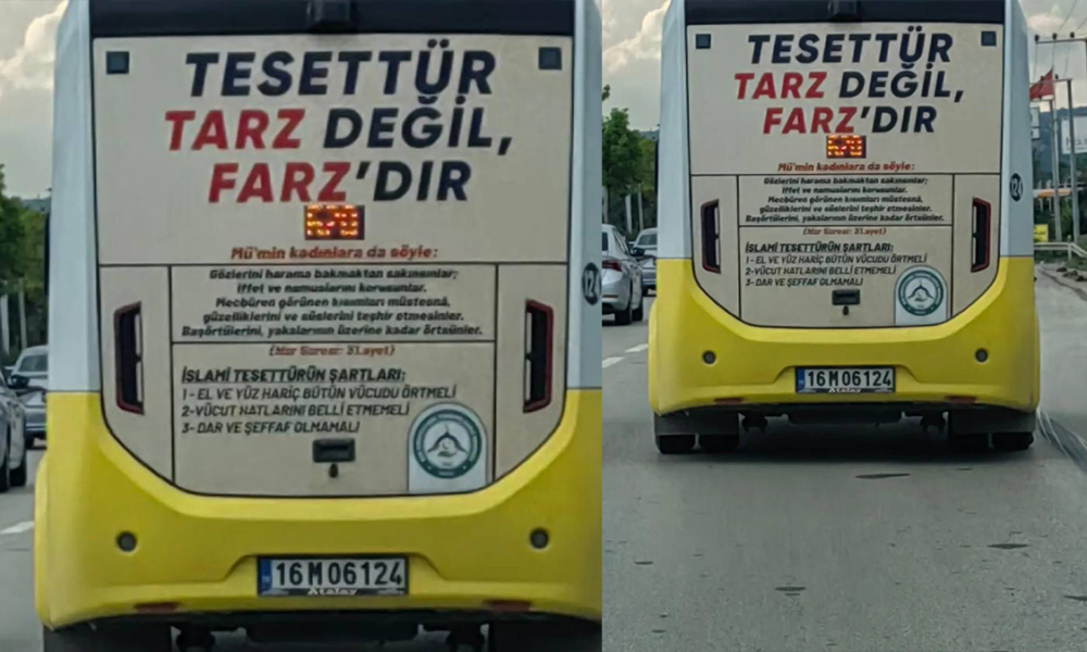Kiralanan reklam alanına asıl afişte ise “Tesettür tarz değil farz’dır” başlığı altında Nur Süresi 31. Ayetin meali yer alıyor.