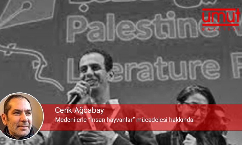 İdeolojik kurgu böyle oluşturulduğu için Filistinliler artık açıktan rahatlıkla “hayvansı insanlar olarak” tanımlanabiliyor. Gazze’den dünyaya bir mektup yazan Ahmed İssa bunu vurgulamak için mektubunu “medeniyetsiz ve insan-hayvan” olarak imzalamış. Mektubu, İngilizce İşçilerin Dünyası Dergisi’nde yayımlandı.