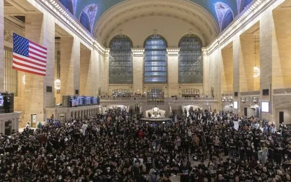 İsrail’in Gazze’ye yönelik operasyonları genişletme açıklamasının ardından ABD’li Yahudiler ateşkes çağrısı yaparak New York’taki ünlü Grand Central tren garını işgal etti.