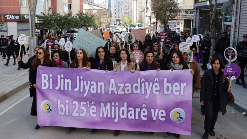 25 Kasım dolayısıyla kadınlar Van’da, “Jin, jiyan, azadi” sloganlarıyla yürüyüş gerçekleştirdi.
