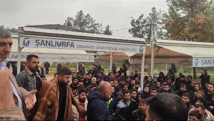 Askerler, iş yerinin bulunduğu sokağı kapatarak, işçilere engel oldu. İşçiler, askerlerin “müdahale” tehdidi üzerine OSB’de bulunan cami avlusunda toplandı. Urfa İl Müftüsü Ramazan Tolan, “İbadet alanında eylem yaptıramayız” gerekçesiyle işçileri camiden çıkarmak istedi. İşçilerin tepki göstermesi üzerine, Tolan camiyi terk etti. İşçilerin cami avlusundaki bekleyişleri sürüyor.