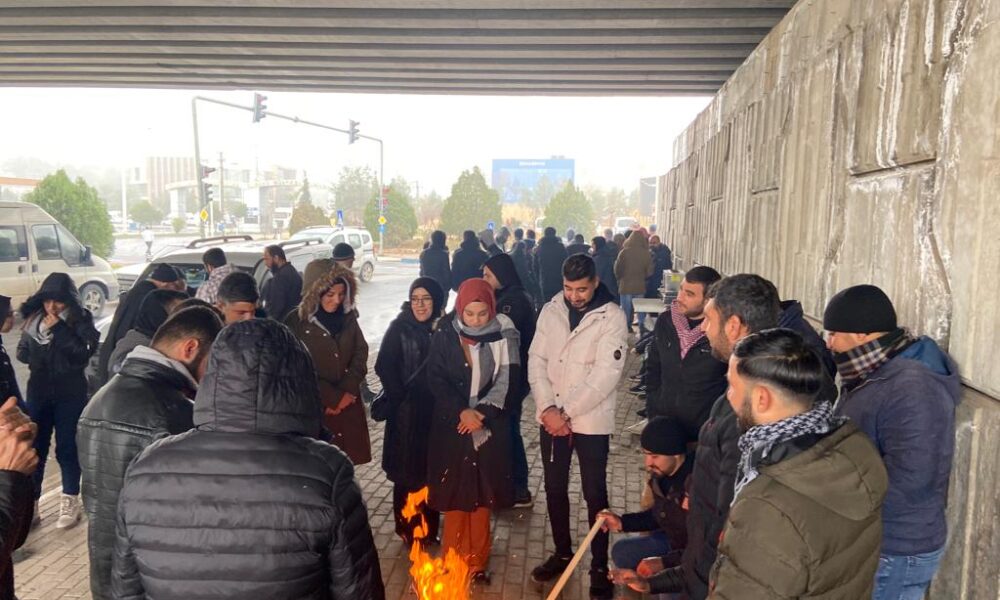 Özak Tekstil işçilerinin sendikal hakları için başlattıkları direniş 26. gününde. Fabrika önüne gitmelerine izin verilmeyen işçiler, OSB girişinde toplandı. İşçiler zorlu hava koşullarına rağmen mücadeleye devam edeceklerini, işlerine dönmek istediklerini söyledi.
