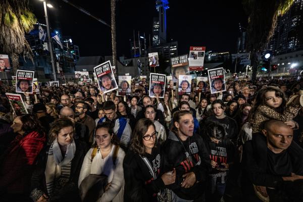 İsrail’in 92 gündür katliamlarını sürdürdüğü Gazze Şeridi’ndeki İsrailli esirlerin yakınları, Tel Aviv ve Kudüs’te eylem düzenleyerek hükümetin bir an önce Hamas ile esir takası anlaşması yapması talebinde bulundu. İsrail hükümetinden Gazze’deki esirleri geri getirmek için bir an önce Filistin tarafıyla esir takası anlaşması yapmasını isteyen kitle sık sık “hemen şimdi” sloganları attı.