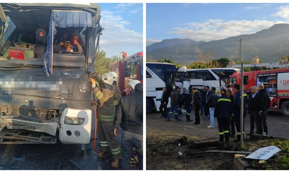 Hatay’ın İskenderun ilçesinde Payas-İskenderun Otoyolu Karayılan Kavşağı’nda işçileri taşıyan N.K. yönetimindeki otobüs ile F.S. yönetimindeki otobüs çarpıştı. Kaza nedeniyle yol araç trafiğine kapanırken, ihbar üzerine bölgeye itfaiye, polis ve sağlık ekipleri sevk edildi.