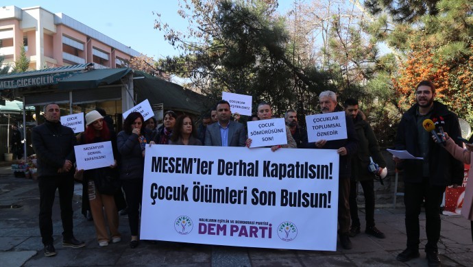 Halkların Eşitlik ve Demokrasi Partisi Çocuk, Emek ve Eğitim Politikaları komisyonları, Mesleki Eğitim Merkezleri’nin kapatılması ve çocuk ölümlerine son verilmesi talebiyle Milli Eğitim Bakanlığı önünde açıklama yaptı. “MESEM’ler derhal kapatılsın, çocuk ölümleri son bulsun” pankartının taşındığı açıklamada, basın metnini DEM Parti Emek Komisyonu Eş Sözcüsü Sevtap Aktar ile Çocuk Komisyonu Sözcüsü İhsan Saylan okudu.
