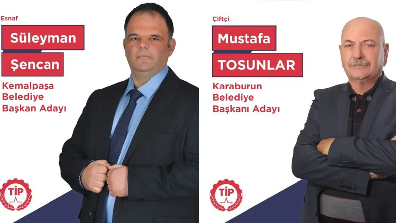 İzmir’in 6 ilçesindeki adaylarını açıklayan TİP, Kemalpaşa’dan Deva Partisi’nin eski ilçe başkanı Süleyman Şencan’ı, Karaburun’dan ise Vatan Partisi eski İl Başkanı Mustafa Tosunlar’ı aday gösterdi. Tosunlar bir dönem Bornova Belediyesi’nde başkan yardımcılığı görevinde de bulundu.