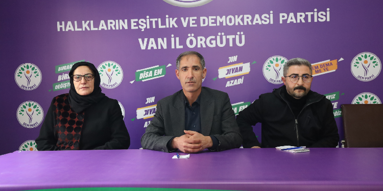 Kayyum yönetimindeki Van Büyükşehir Belediyesi tarafından yapılan engellemeye ilişkin Dil Kültür ve Sanat Araştırmaları Derneği (ARSİSA) ve DEM Parti, il binasında basın toplantısı düzenledi.