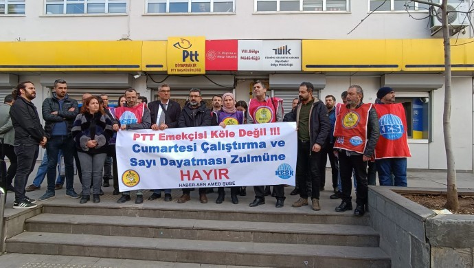 Haber-Sen Amed Şubesi Örgütlenme Sekreteri Serhat Oktay, PTT işçilerinin Cumartesi günleri çalıştırılmasına tepki gösterdi. Oktay, “Cumartesi çalışması PTT Genel Müdürlüğü tarafından rutin bir çalışma şekline getirilmiş durumdadır” dedi.