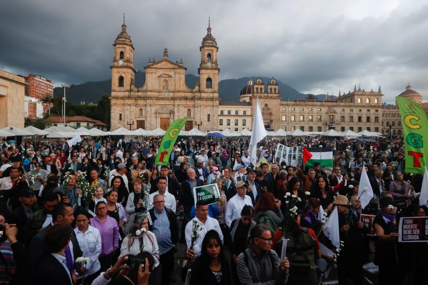 Sıra sıra dizilmiş sembolik tabutların önünde toplananlar, siyasi cinayetleri kınadı. Defendamos la Paz ve Barış için Sosyal Diyalog Ulusal Masası öncülüğündeki girişime çeşitli siyasi sektörlerden ve kamuoyundan isimler de katılarak toplu yas çağrısında bulundu.