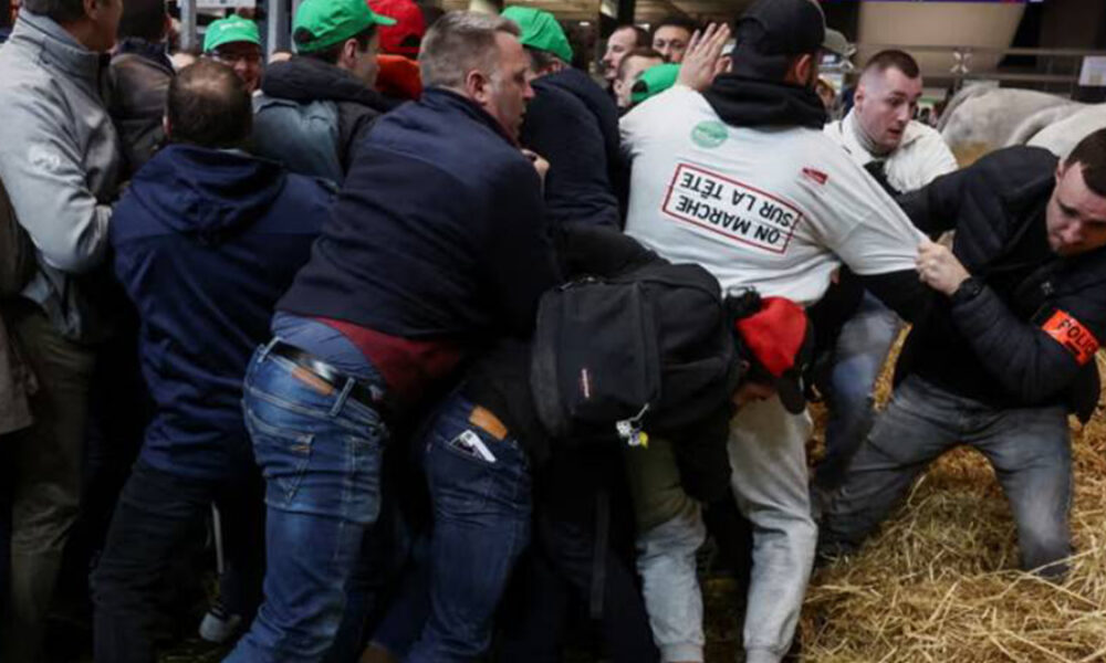 Fuarın içinde düzinelerce polis memuruyla karşı karşıya gelen çiftçiler bağırıp yuhalayarak Fransa Cumhurbaşkanı’nı istifaya çağırdı.