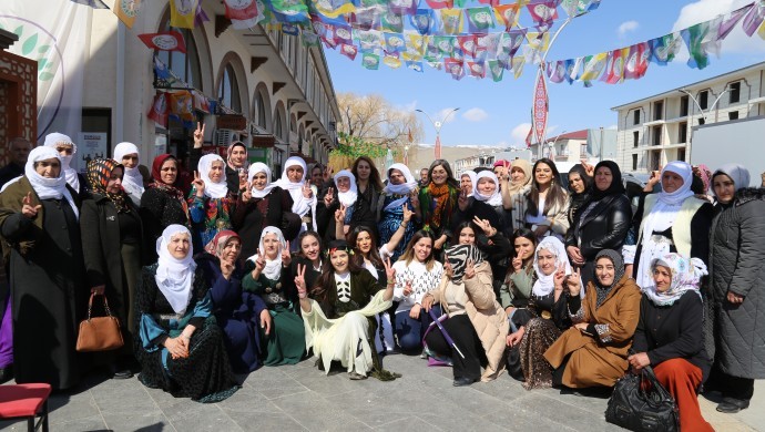 TJA ve DEM Parti Kadın Meclisi, Hoşhaber beldesinde kadın şöleni gerçekleştirdi. Şölen öncesi kadınlar, kent merkezinde 8 Mart’ta gerçekleştirecekleri şölene katılım çağrısı yapan bildirileri dağıttı. Daha sonra DEM Parti belde binası önünde yapılan şölene geçildi. Şölene, DEM Parti Îdir Belediyesi Eşbaşkanı adayı Nejla Kum, il ve belde yöneticileri ile birçok kadın katıldı. Çekilen halayların ardından konuşan Demokratik Bölgeler Partisi Îdir İl Eşbaşkanı Oya Malgaz, PKK Lideri Abdullah Öcalan’a yönelik tecride dikkat çekerek, “Aynı zamanda Kürt halkı üzerinde ağır bir tecrit var. Cezaevlerinde tecridin kaldırılması için açlık grevleri sürüyor. Annelerimiz adalet nöbetinde” diye belirtti.