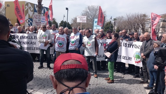 Tüm Emeklilerin Sendikası İzmir Şubeleri, gelir adaletsizliğine dikkat çekmek için Konak İş Bankası önünde basın açıklaması gerçekleştirdi. Açıklamanın yapıldığı alanda, “İnsanca bir yaşam istiyoruz” pankartı taşındı. Basın açıklamasını Tüm Emeklilerin Sendikası Bornova Şube Başkanı Yusuf Şenol okudu.