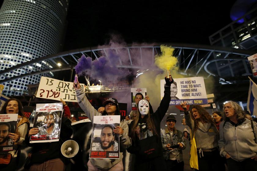 Hükümet karşıtı eylemlere ek olarak Menachem Begin Caddesi üzerindeki Savunma Bakanlığının önünde de İsrailli esirlerin salıverilmesi çağrılarıyla başka bir eylem daha düzenlendi.