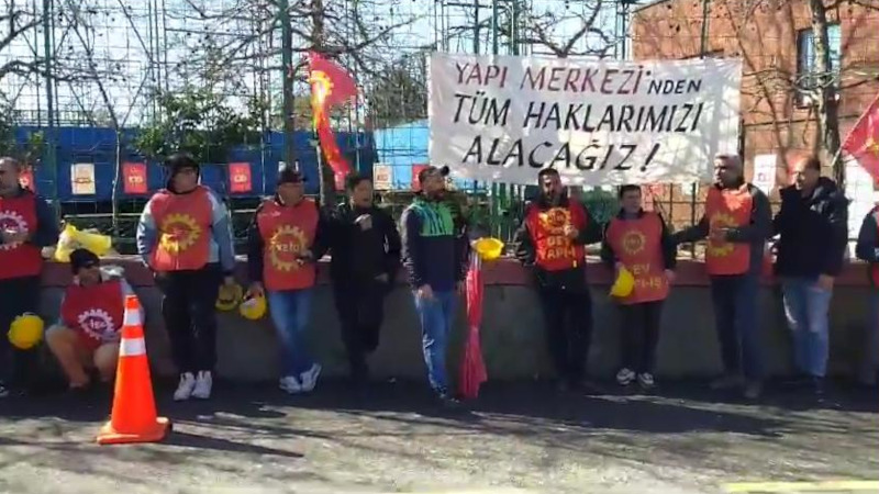 “Yapı Merkezi’nden tüm haklarımızı alacağız” pankartının açıldığı eylemde sık sık “İnşaat işçisi köle değildir”, “Direne direne kazanacağız” sloganı atılıyor.