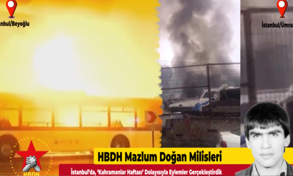 Mazlum Doğan Milisleri, 20 Mart günü Beyoğlu ve Ümraniye’de harekete geçti. Beyoğlu’nda uzun süredir takibimiz altında olan bir faşiste ait tamirhaneyi hedef aldık. Bu faşist, özellikle Kürt gençleri yoz bataklığa sürüklemekteydi. Gece saat 03.30 sularında gerçekleştirdiğimiz başarılı eylem sonucu tamirhane tamamen yanarken, yakında park halinde olan belediye otobüsü de alev aldı.