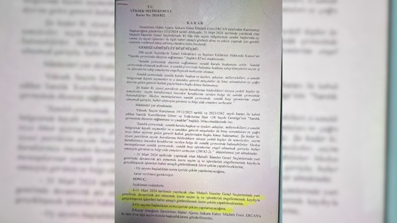 Yüksek Seçim Kurulu, gazetecilerin oy sayımı sırasında görüntü almasını yasakladı.