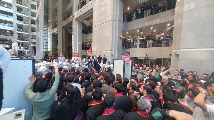 İstanbul Adliyesi önünde bir araya gelen hukuk örgütleri, polisin tüm saldırı ve engelleme girişimlerine rağmen “Bijî berxwedana Van e”, “Abdullah Zeydan onurumuzdur” sloganları atarak siyasi darbeye tepki gösterdi. Çağlayan’da bulunan İstanbul Adliyesi önünde bir araya gelen yüzlerce hukukçu ve aktivist basın açıklaması yapmak isterken polisin saldırısına uğradı.