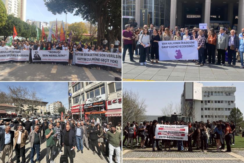 Halkın iradesinin gasp edildiği vurgulanan açıklamada, “Bu kayyum dayatması ne yalnızca Zeydan ile ne de yalnızca Van halkını ilgilendirmektedir. Bulunduğumuz her alanı baskı yasak ve kriz ile kuşatan, üniversitelere rektör atayan, halk iradesini alanen gasp eden, Van halkının oylarına çöküp AKP’li adayı dayatan iktidara karşı; barış, demokrasi ve özgürlük mücadelesini büyütecek, ‘Konuş, sen nerelisin?’ diyen halkın sesini yükselteceğiz! Halkın iradesinin çiğnenmesine izin vermeyeceğiz! Bugünden yarına insanca, özgür bir yaşam ve halkların eşitliği direnenlerin mücadelesi ile gelecek. Herkesi Van halkının iradesine sahip çıkmaya ve saldırıların karşısında birleşmeye çağırıyoruz” denildi.