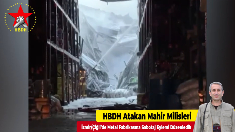 Halkların Birleşik Devrim Hareketi (HBDH) Atakan Mahir Milisleri tarafından yapılan yazılı açıklamayla, 18 Nisan sabahı İzmir’in Çiğli ilçesinde bulunan Atatürk Organize Sanayi Bölgesi içindeki bir metal kaplama fabrikasına yönelik eylem gerçekleştirildiği duyuruldu. Açıklamada yangının bitişikte bulunan plastik fabrikasına da sıçradığını belirten milisler, iki fabrikanın yanarak kullanılamaz hale geldiğini açıkladı.