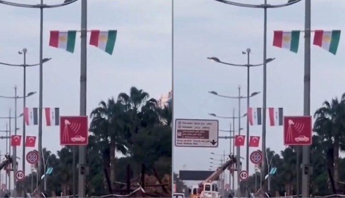 Erdoğan’la görüşme öncesinde KDP, Erdoğan’ı karşılamak için Erbil’in ana caddelerini, köprüleri ve yüksek binaları, Türk bayraklarıyla donattı