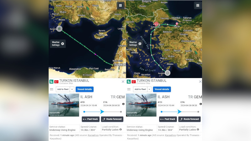 X hesabından Erdoğan’ı yalanlayan gazeteci Metin Cihan, siyonist İsrail-Türkiye arası gemilerin yük taşımaya devam ettiğini şu sözlerle duyurdu: “Az önce Erdoğan’ın ‘İsrail ile ticareti kestik’ açıklamasına denk geldim. Kesmemişiz. Tam olarak Erdoğan konuşma yaptığı esnada Türkiye-İsrail arasında gemiler yük taşımaya devam ediyor. Örneğin, Ayyıldız ve Türkon İstanbul adlı gemiler şu an seyir halinde.”