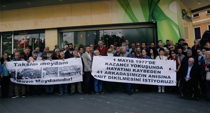 Eylemde “Taksim Meydanı 1 Mayıs meydanıdır!” ve “1 Mayıs 1977’de Kazancı Yokuşu’nda hayatını kaybeden 41 arkadaşımızın anısına anıt dikilmesini istiyoruz!” yazılı pankartlar taşındı.