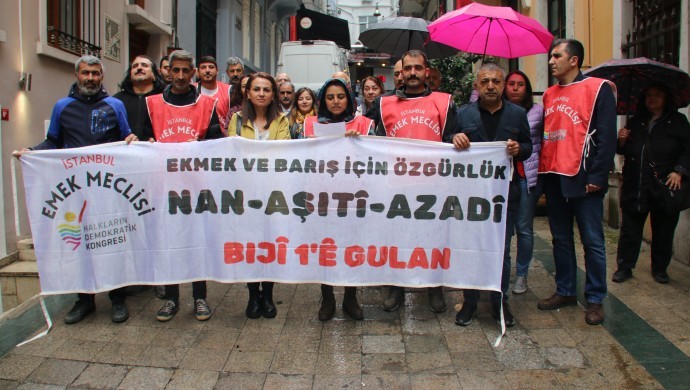 Halkların Demokratik Kongresi (HDK) Emek Meclisi, İstanbul Beyoğlu’nda bulunan genel merkez binası önünde 1 Mayıs’a dair açıklama yaptı. “Yaşasın 1 Mayıs” sloganının atıldığı açıklamada konuşan HDK Emek Meclisi’nden Sevim Kaya, 1 Mayıs’ın savaşa, sömürüye ve ayrımcılığa karşı direnmenin sembolü olduğunu belirtti.