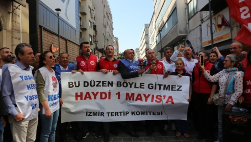 İzmir 1 Mayıs Tertip Komitesi, Gündoğdu Meydanı’nda yapılacak mitinge katılım çağrısı için Konak’ta bulunan Kemeraltı çarşısında açıklama yaptı. Eylemde, sık sık “Bu düzen böyle gitmez, haydi 1 Mayıs’a” pankartı açılarak, “Birleşe birleşe kazanacağız” ve “Her yer Taksim her yer direniş” sloganları atıldı.