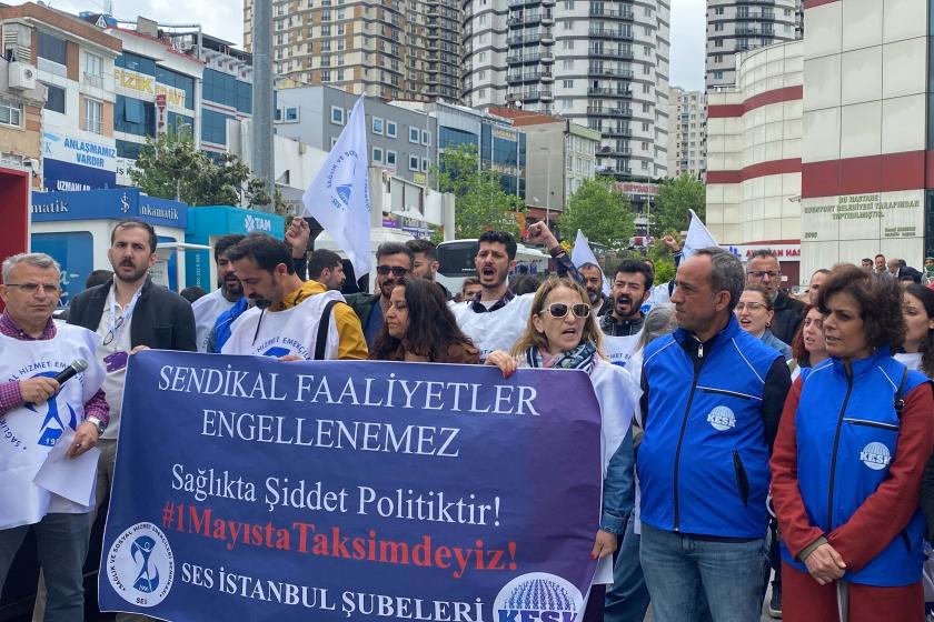 Geçtiğimiz günlerde Sağlık ve Sosyal Hizmet Emekçileri Sendikası, 1 Mayıs’a çağrı amaçlı yönetici ve temsilcileriyle yaptığı sendikal çalışma Esenyurt Necmi Kadıoğlu Devlet Hastanesi Başhekim Hasan Ökmen’in talimatıyla özel güvenlik ve polis tarafından engellendi. Sendikal faaliyetlerinin engellenmesine tepki gösteren sağlık emekçileri hastane önünde “Sendikal faaliyetler engellenemez. Sağlıkta şiddet politiktir. 1 Mayıs’ta Taksimdeyiz” pankartı açarak, başhekim hakkında hukuki süreci başlatacaklarını söyledi.