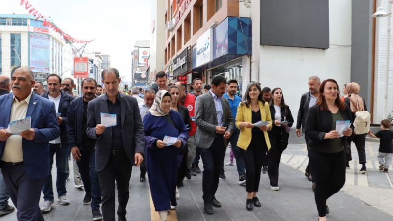 Van Büyükşehir Belediye Eşbaşkanı Neslihan Şedal da, ölüm, katliam, talan ve gasp politikası ile kendini yaşatmaya çalışanlara karşı alanlarda olacaklarını kaydederek şöyle devam etti: “1 Mayıs’ta direniş alanlarında yaşama, özgürlüğe, barışa ve demokrasiye sahip çıkmamız gerekiyor. Başta kadınlar olmak üzere herkes için, barış, demokrasi ve hukuktan yana olanlar için kentleri yaşanır kılmak için 1 Mayıs’ta yine direniş alanlarında bir araya geleceğiz. Bizler kendine ahlaki ve politik toplumun ilkelerini benimsemiş ve toplumsal sorunları dert edinmiş bütün bu toplumun sorunlarını yeniden özgür örgütlemeyi kendine dert edinmiş olarak yeniden örgütlülüğümüzü alanlarda büyütmeyi ve emek etrafında örgütlenmeye çağrıda bulunuyoruz” dedi. Özellikle özel savaş politikalarının hedefi haline gelen gençlere, kadınlara ve işçilere Şedal, şöyle seslendi: “Her gün kadın kırım politikaları ile kendini var eden politikalara karşı mücadelemizi büyütmek için kadın yoldaşlarımıza sesleniyorum; bugün çocukların cezaevinde haksız ve hukuksuz yere tecrit politikalarıyla mücadele eden annelerimize sesleniyoruz. Toplumsal sorunlara karşı mücadele eden tüm sivil toplum örgütlerine ve kuruluşlarına sesleniyoruz yarın örgütlülüğümüzü büyütme günüdür.”