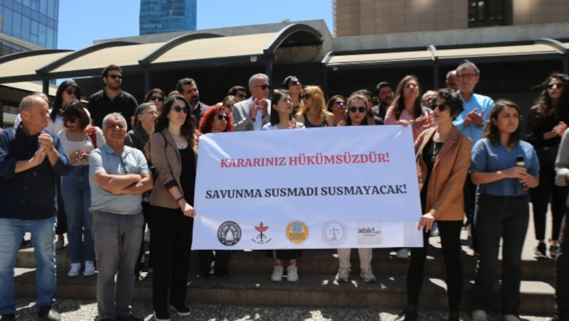 İzmir’deki hukuk örgütleri, adliye önünde kararı protesto etti. Eyleme Halkların Eşitlik ve Demokrasi Partisi milletvekili Burcugül Çubuk ile İzmir Barosu Başkanı Sefa Yılmaz’ın yanı sıra çok sayıda avukat katıldı.