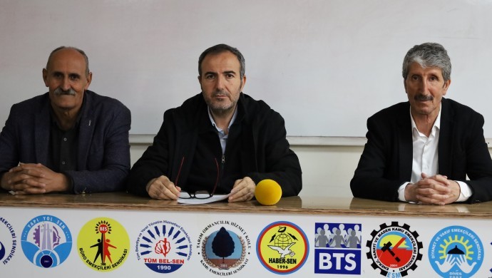 Kamu Emekçileri Sendikası Konfederasyonu Van Şubeler Platformu, 1 Mayıs Bayramı’nı Taksim Meydanı’nda kutlamak isteyenlerin gözaltına alınıp tutuklanmasına ilişkin Eğitim ve Bilim Emekçileri Sendikası Van Şubesi’nde basın toplantısı düzenledi.