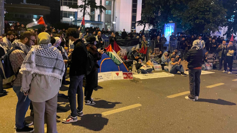 “Yaşasın küresel intifada” sloganının atıldığı eylemde siyonist İsrail geri adım atana dek konsolosluk önünde eylemlerin süreceği vurgulandı.