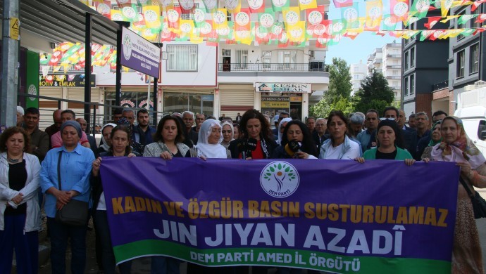 DEM Parti Amed İl Eşbaşkanı Pınar Sakık Tekin, AKP-MHP iktidarının devletin tüm gücü ve imkânlarını kullanmasına rağmen kadınlar öncülüğünde yürütülen mücadele karşısında büyük bir yenilgi aldığını hatırlattı. İktidarın aldığı yenilgi ardından Kürt halkına ve demokrasi güçlerine karşı yeni bir saldırı dalgası başlattığının altını çizen Tekin, “İktidar kirli politikalarını, kaybını gizlemek ve manipülasyon yaratmak, kamuoyu algısı yaratarak hedef saptırmak için önce kadına ve özgür basına yönelmiştir” dedi.