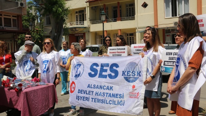 Sağlık Emekçileri Sendikası, “Hemşirelik Haftası”na ilişkin, Alsancak Nevvar Salih İşgören Devlet Hastanesi bahçesinde açıklama gerçekleştirdi. Çok sayıda sağlık emekçisinin katıldığı açıklamada sık sık, “Köle değil, hemşireyiz” ve “İnsanca çalışmak istiyoruz” sloganları atıldı. Açıklamada hemşirelerin yaşadığı sorunlara dikkat çekildi.