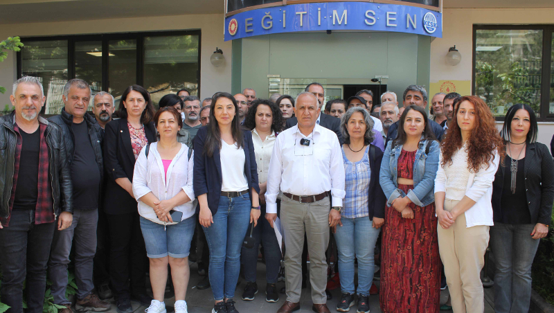 Kobanê davasına ilişkin sendika binası önünde açıklama yapan Eğitim Sen yönetimi, yaşananlara seyirci kalmayacaklarını vurguladı. Emekçilere yoksulluğu dayatanlarla demokrasiye tahammülü olmayanların aynı yerden beslendiğine işaret eden eğitim emekçileri, “Halkların eşitlik ve özgürlük temelinde bir arada yaşaması için demokrasi mücadelesini yükseltmek aynı zamanda emek mücadelesini de yükseltmekle olacaktır. Buna olan inancımızı, umudumuzu kırmak isteyenlere karşı bir arada ve ortak mücadeleye hiç olmadığı kadar ihtiyacımız vardır” dedi.