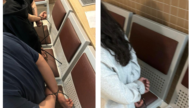Konuya ilişkin sosyal medya hesabı üzerinden paylaşım yapan Özgürlük İçin Hukukçular Derneği (ÖHD) İstanbul Şubesi, “Müvekillerimiz adliyede ters kelepçe işkencesine maruz bırakılmaktadır. İtirazlarımıza rağmen ters kelepçeyi açmayan kolluk suç işlemektedir” diyerek ters kelepçe işkencesine tepki gösterdi.