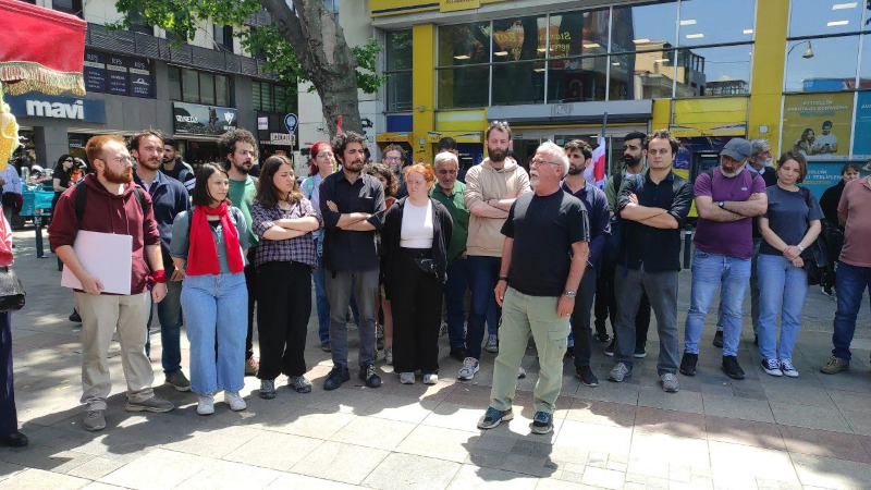 Sonrasında Kadıköy PTT önünde İstanbul Emek, Barış ve Demokrasi Güçleri adına kısa bir açıklama yapan Kanber Saygılı, “2024 1 Mayıs’ın ve Taksim’in özgürleşmesi mücadelesinde devletin baskınlarıyla gözaltına alınıp tutuklanan, şu anda cezaevinde bulunan 47 arkadaşımızla dayanışmak için dayanışma kartları gönderdik. Bir kez daha söylemek gerekirse 1 Mayıs’ın özgürleştirilmesi, Taksim’in özgürleştirilmesi anlamına gelir. Aynı zamanda memlekette bir demokratik durum söz konusu olacaksa Taksim’in özgürleştirilmesi gerektiği inancındayız” dedi.