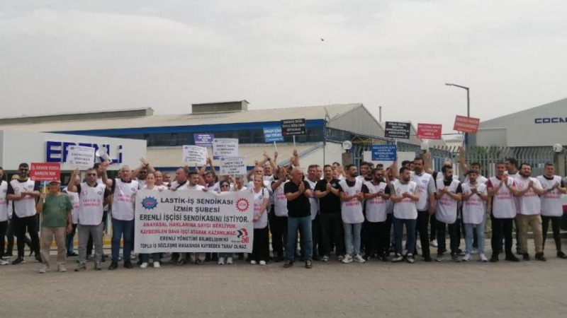 İzmir Kemalpaşa Organize Sanayi Bölgesi’nde bulunan Erenli Kauçuk fabrikasında Lastik İş Sendikasına üye olan 5 işçi işten atıldı. Fabrika önünde yapılan açıklamada, işçiler sendikal haklarından vazgeçmeyeceklerini kaydetti.