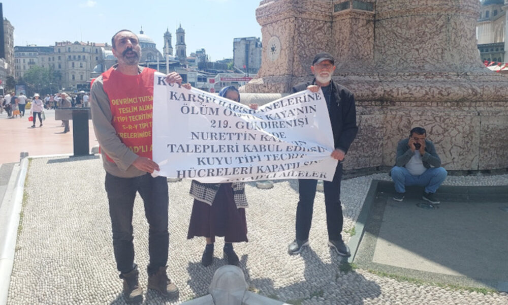 Ölüm orucu direnişinin 219. gününde olan Nurettin Kaya için TAYAD’lı Aileler Taksim Meydanı’nda açıklama yaptı. “Kuyu tipi hapishanelere karşı Nurettin Kaya’nın ölüm orucu direnişi 219. gününde. Nurettin Kaya’nın tüm talepleri kabul edilsin. Kuyu tipi tecrit hücreleri kapatılsın” pankartının açıldığı eyleme Nurettin Kaya’nın annesi Dudu Kaya da katıldı.