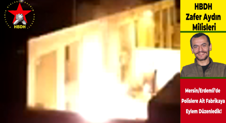 HBDH Zafer Aydın Milisleri, Mersin’in Erdemli ilçesinde polislere ait olduğu tespit edilen bir fabrikaya eylem düzenledi. Eylem sonrasında fabrikanın ana girişi tamamen yandı.