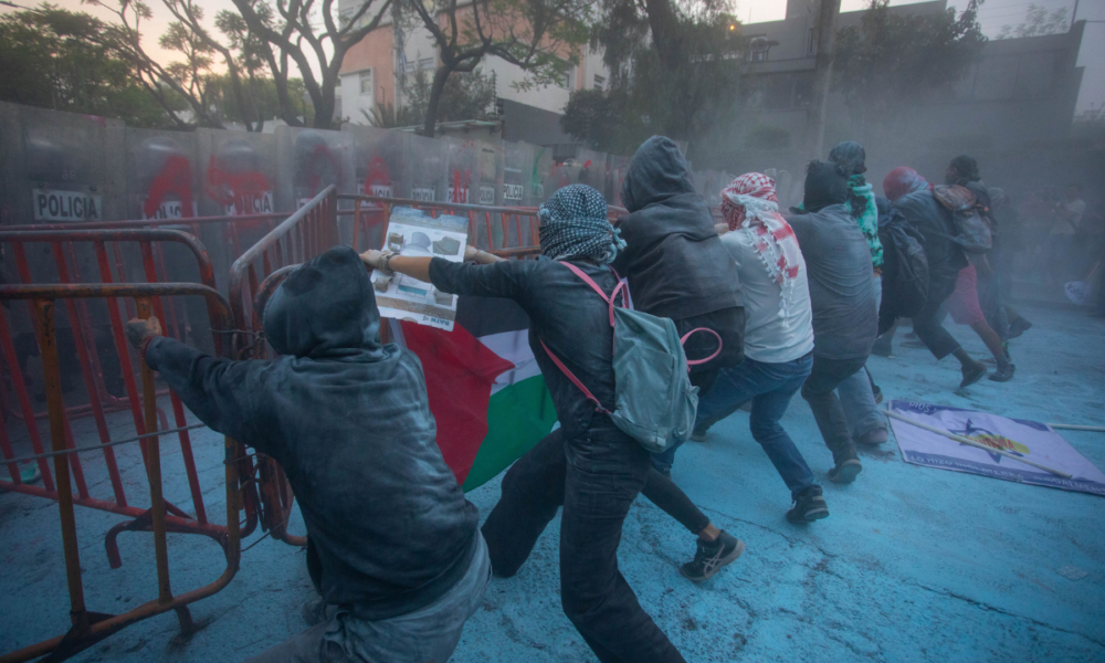 Meksika’nın başkenti Meksiko’daki İsrail Büyükelçiliği önünde düzenlenen Filistin’e destek gösterilerinde meydana gelen eylemde 6 polis yaralanırken bazı göstericiler gözaltına alındı.