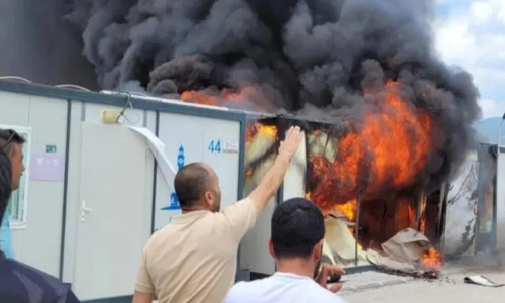 6 Şubat deprem katliamının ardından Osmaniye’nin Kadirli ilçesinde kurulan Karaçay Konteyner Kent Geçici Barınma Merkezi’nde bilinmeyen bir nedenle yangın çıktı.
