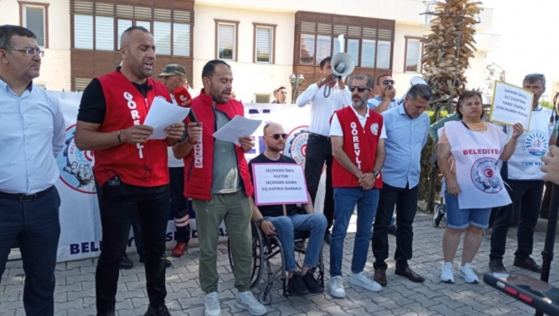 İşçiler adına konuşan Türkiye Belediyeler ve Genel Hizmetler İşçileri Sendikası İzmir Çevre Belediyeler Şubesi Başkan Yardımcısı Erdal Kutlu, yüzlerce işçinin bayrama 15 gün kala tazminatsız işten atıldığını söyledi. İşçilerin AKP’ye yakınlığı ile bilinen Hizmet-İş’e üye olursa işten atılmayacağı yönünde tehdit edildiğini kaydeden Kutlu, “Bugün burada yüzlerce emekçi işten atılırken, hak arama mücadelesi verirken, dün ‘Bize üye olmazsanız işten alırsınız’ diyen sözüm ona işçi temsilcilerini işçinin yanında göremezsiniz. Çünkü Hizmet-İş iktidarın taşeronu, emek düşmanı, işçi düşmanı bir yapıdır. AKP’li Belediye Başkanı Aydın Pehlivan emek düşmanlığını daha rahat yapabilmek için yasaya aykırı olmasına rağmen belediyeyi maddi zarara uğratmayı göze alarak yetkili sendika Belediye-İş’in tüm yönetici ve temsilcilerini işten attı. Başkan Pehlivan, yasanın açık hükmüne aykırı davranarak belediyeyi ve kamuyu zarar uğratmaktadır” ifadelerini kullandı.