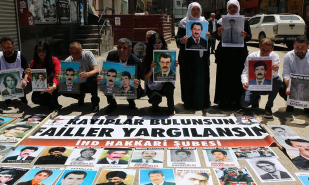 İHD Hakkari Şubesi ve kayıp yakınları, Hakkari’nin Yüksekova ilçesine bağlı sanat Sokağı’nda bir araya geldi. Eyleme, kayıp yakınları, Hakkari Barosu ve Barış Anneleri, DEM Parti ve DBP Gever ilçe örgütü yöneticilerinin yanı sıra çok sayıda kişi katılım sağladı. Eylemde, “Kayıplar bulunsun, failler yargılansın” ve “Failler belli kayıplar nerede?” pankartı, faili meçhul şekilde katledilen ve kaybedilenlerin fotoğrafları taşındı. Eylemin 126’ıncı haftasında, kayıp yakınlarının Diyarbakır’da 800 haftadır sürdürdüğü eyleme dikkat çekildi.