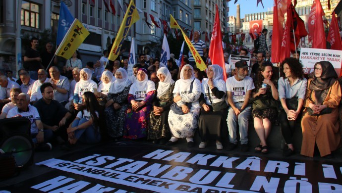 Halkların Eşitlik ve Demokrasi Partisi Hakkari Belediyesi Eşbaşkanı Mehmet Sıddık Akış’ın tutuklanması ve yerine kayyım atanmasına dair tepkiler sürüyor. DEM Partili belediyeler önünde nöbet eylemleri devam ederken, birçok kentte ise hergün çeşitli protestolar düzenleniyor. İstanbul’da Şişhane Meydanı’nda da Emek, Barış ve Demokrasi güçleri öncülüğünde eylemler devam ediyor. “Kayyım Defol” tişörtleri giyen protestocular, saat 19.00’dan 22.00’a kadar eylemlerini sürdürüyor.