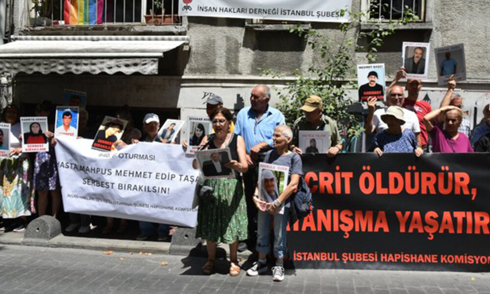 İHD İstanbul Şubesi, 640. F oturmasında hayatını tek başına idame ettiremeyen ve her an yeni bir kalp krizi riskiyle karşı karşıya olan hasta tutsak Mehmet Edip Taşar’ın serbest bırakılmasını istedi