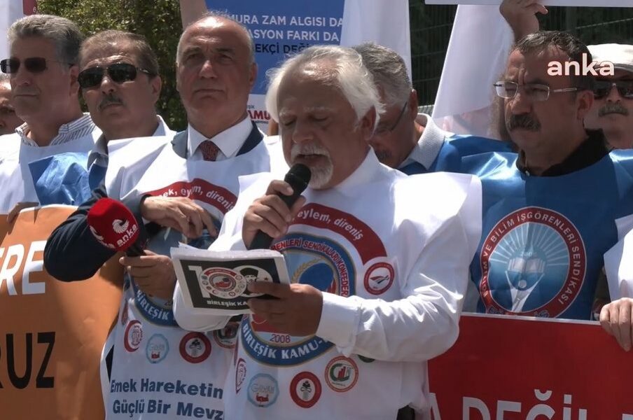 Birleşik Kamu-İş Konfederasyonu üyeleri, Çalışma ve Sosyal Güvenlik Bakanlığı önünde kamu çalışanları ve emeklilerin maaş zammını protesto amacıyla eylem yaptı.