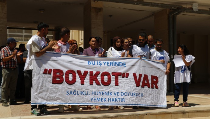 Sağlık ve Sosyal Hizmet Emekçileri Sendikası Amed Şubesi, Dicle Üniversitesi Hastanesi’nde 17 Temmuz’da 700 kişinin zehirlenmesi olayına ilişkin açıklama yaptı. Tıp Fakültesi Dekanlığı önünde yapılan açıklamada, “İş yerinde boykot var. Sağlıklı, hijyenik ve doyurucu yemek haktır” pankartı açıldı. Amed Tabip Odası üyelerinin de destek verdiği açıklamada, sık sık, “Sermayeye kurban olmayacağız” ve “Sağlık haktır, satılamaz” sloganlarının atıldı. “Ücretsiz, nitelikli, ulaşıla bilinir, anadilde sağlık” yazılı önlüklerin giyildiği eylemde, açıklama yapan SES Amed Şubesi Kadın Sekreteri İlknur Ayık, sağlıklı, hijyenik, ulaşılabilir yemek için bir çok eyleme başvurduklarını fakat yemeklerin düzeltilmesi yerine olması gerekenden uzaklaşıldığını söyledi.